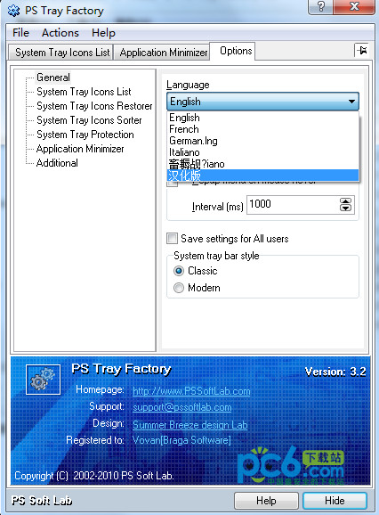 右下角图标隐藏工具 v3.2 汉化版 右下角图标隐藏工具是一款实用的托盘图标管理器,它可以隐藏任务栏右下角的图标,隐藏部分运行中的程序,支持设定密码控制显示/隐藏托盘图标,还可以对右下角的图标进行排序。