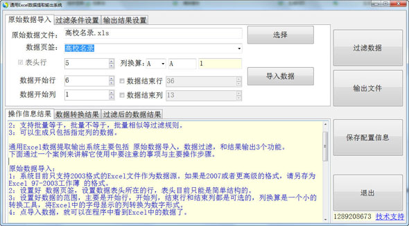 通用Excel数据提取输出系统主要包括 原始数据导入,数据过滤,和结果输出3个功能。
