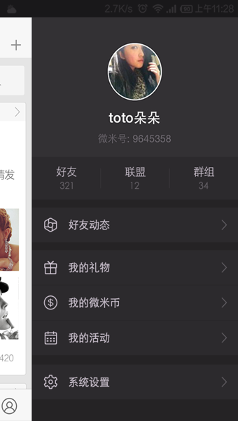 总体来说,微米有四大模块,分别是消息、群组、联系人及设置,其中消息和微信的首屏类似,个人通讯及群组消息皆在此呈现(群组内的赞、评论等也会出现在消息屏)。用户可以通过通讯录、新浪微博邀请、导入好友,或将群组内成员加为好友。在“群组”模块上,用户可以根据“地理位置”、“热门”、“动态”去查看、加入自己感兴趣的群组。而群组的概念也和我们在陌陌、微信上看到的不同。