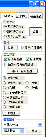 神仙道懒娃拥有自动打蟠桃、自动打生肖、自动打六道、自动打神秘、一键画龙鱼、一键吉星、一键帮派转盘、一键怪物攻城、自动喝药、自动刷BOSS等等功能。