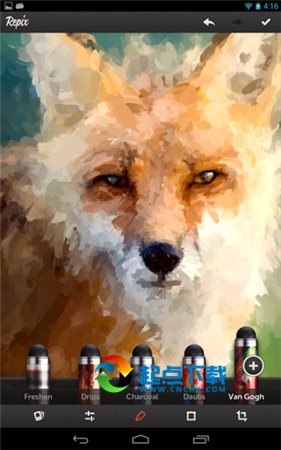Repix图片编辑: Repix界面不错,初次使用没有那么的坑爹想放弃这个软件,功能实用,在一定程度上满足了人们对画作创作的需求,过一把画家瘾。Repix很有处理图片成艺术作品的赶脚,不错。只是国内APP基本被几个大的运营商占据了。