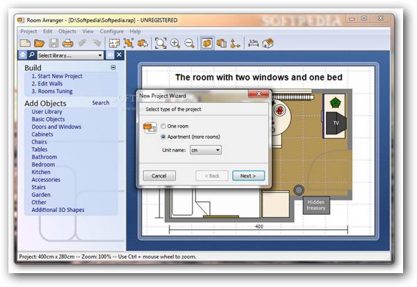 Room Arranger 是一款房屋布局设计工具,可以实现3D模拟,让你轻易移动移动笨重的家具而不用后悔是否因放错位置而重搬。包括35种语言,具备简体中文。