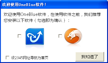 OneBlue文件加密软件在安装的过程中,会推荐我们安装以下软件,并且设置2345网址导航为首页,默认为勾选,大家根据自己的需要来选择吧。