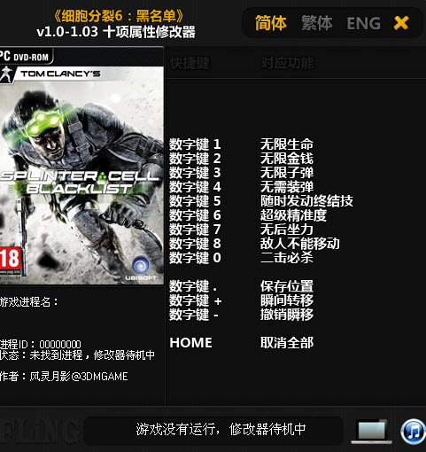 细胞分裂6:黑名单修改器是为同名游戏制作的辅助修改工具,共添加了无限生命、金钱、弹药等六项强大功能,帮助玩家轻轻松松度过难关,带给您最好的游戏体验。