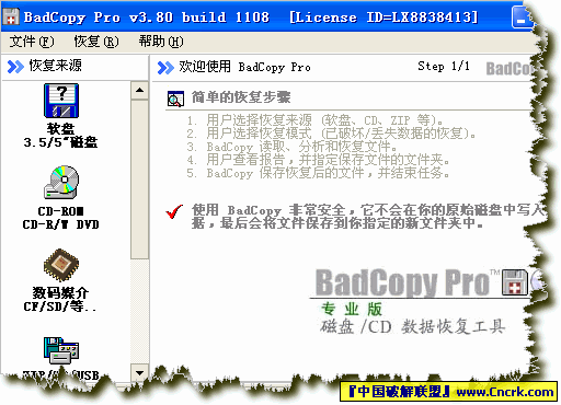 BadCopy 软件可以在不需要人工干预的情况下帮您读出 CD-ROM 或磁盘上的坏文件。效果显著,还具有智能修复的功能,最大程度挽回您的损失.