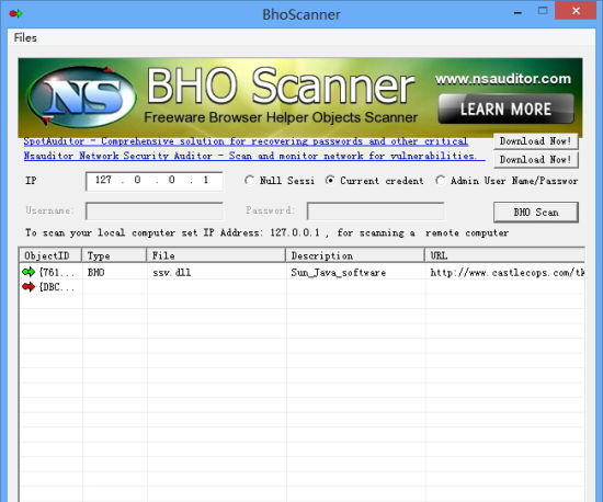浏览器劫持扫描器 BhoScanner是一个简单的软件,它可以帮助您查看在您的本地或在远程计算机上安装的 Bho项目,看是不是有流氓软件。