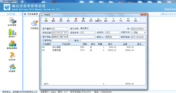 顺达送货单管理系统,最专业的一款送货单管理软件,本软件根据市场需要结合企业自身特点量身订做的操作方便、功能完善功能强大个性化极强的送货系统管理系统。