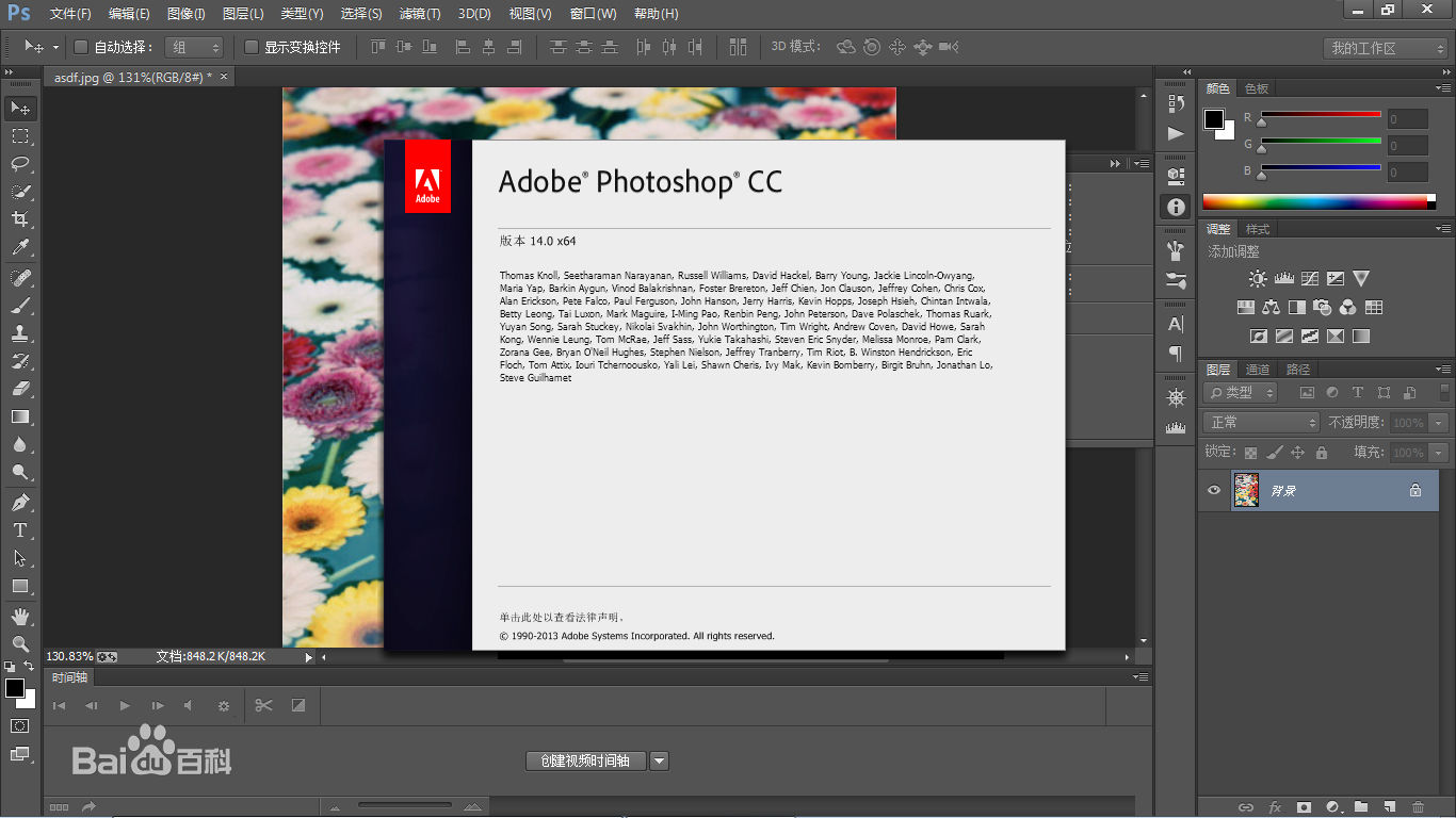 Adobe Photoshop CC是Photoshop CS系列的最新升级版本,是Adobe 公司最新推出的Adobe Creative Cloud系列的一员。Creative Cloud系列的推出也就意味着Adobe将逐渐实现软件的云端化运作。新版的Photoshop CC为我们带来了多个全新的功能,包括智能锐化、智能放大采样(图片无损放大?)、Camera Raw 8图层支持、相机防抖(高级去模糊技术)、条件动作和扩展的智能对象支持等。相对之前的 Photoshop CS系列产品Adobe Photoshop CC 让你享有更多的自由、速度和功能,带来全新的设计体验。Adobe Photoshop CC 提供了众多新增功能。您可使用全新的智能型锐利化 (Smart Sharpen) 工具使细节更为鲜明,还可将低分辨率的相片转化为高分辨率的大型影像,更可取得所有先进的 3D 编辑和影像分析工具。