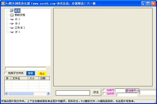 fs图片浏览改名器是一款边浏览边改名的软件。搜索、拖放、边浏览边改名,批量改前缀,批量处理大小等功能。使用起来非常顺手!