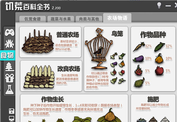 饥荒食谱,蔬菜与水果,肉类与其他,农场物语