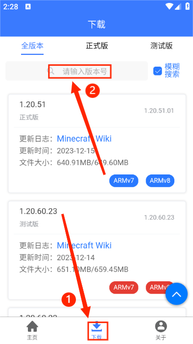 2. 轻点页面最上方的搜索框,输入版本号,接着点击搜索按钮。