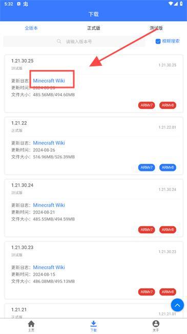 3、最后依据自身需求,点击框选的位置,就能获取《我的世界》想要的版本。