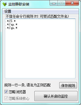 监控静默安装是一款用来监控软件安装包是否会在未告知用户的情况下安装第三方软件的流氓行为工具。Windows 的一些机制被滥用,比如指定安装程序 /S 参数就表示静默安装,用户无法在桌面上看到任何安装过程而直接完成安装。用户电脑被各种未知程序霸占、流氓软件满天飞的情况。