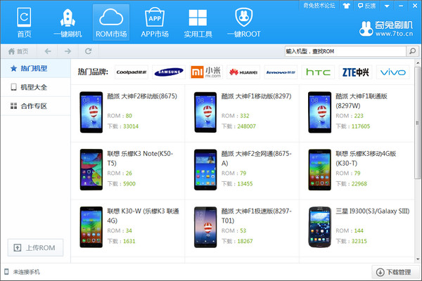 ROM市场支持大量的机型,在ROM市场下载自己手机型号的ROM包。