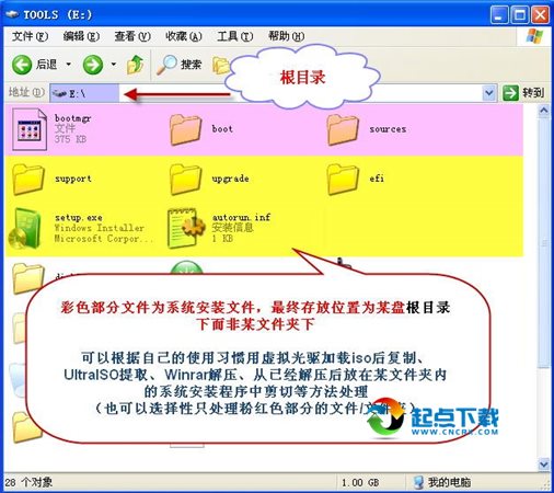一、虚拟光驱加载ISO后复制或UltraISO/WINRAR解压ISO文件至硬盘一非系统分区的根目录