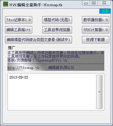 7FZC编辑全能助手内附模型代码(无图),拥有7fzc记事本,能够进行数学播放,还有编辑工具箱、7fzc计算器、资源下载器等工具。7FZC编辑全能助手是编辑地图的得利好帮手,还有它的编辑模型代码综合类图文查看这一功能也让人觉得不可思议,小小的身体里竟蕴含着这么多的能量。