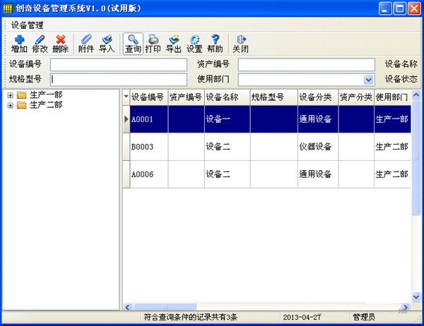创奇设备管理系统能提升企业设备管理水平,同时该系统也可作为资料信息电子化管理的工具。 只是一款企业管理必不可少的一款软件。非常的实用。快来试试吧。
