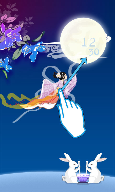 嫦娥奔月(Moon Festival) 1.6.0 安卓版 锁嫦娥奔月安卓版是一款锁屏神器——FUN主题锁屏 嫦娥奔月安卓版一款能让您充满个性的解锁锁屏,一款真正的动画解锁锁屏,一款可以DIY的解锁锁屏。欢迎下载使用!【锁屏主题大意】 明月几时有,把酒问青天。不知天上宫阙,今夕是何年。 又是一年中秋佳节,无论我们是否还漂泊在外,都在此刻表达我们的心意。 用手指送嫦娥奔月去,期盼着,但愿人长久,千里共婵娟。