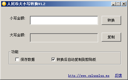 人民币大小写转换器 1.2 绿色免费版 人民币大小写转换器是一款非常方便的,能将小写人民币金额转换成大写人民币金额,人民币大小写转换器是一款操作及其简单的软件,而且人民币大小写转换器占内存资源小,绿色安全,转换速度也是及其快。