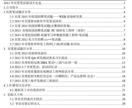 2013年百度求职笔试面试大礼包是一款电子教程软件,013年IT面试之百度笔试面试大礼包,专业的IT面试社区,百度笔试,百度面试,百度2013校园招聘即将开始,为帮助广大同学更好地了解百度,更有效地参加百度2013校园招聘活动,应届生求职网特推出《百度2013校园招聘》求职大礼包
