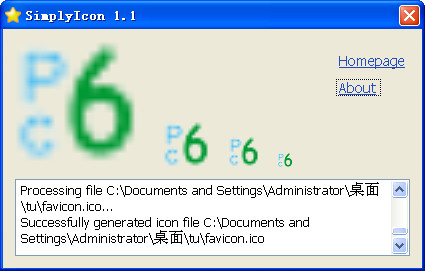 SimplyIcon软件可以自动生成32x32、24x24、16x16这几种尺寸的图标,如果你的底图大于或等于128x128的话还可生成128x128的大图标。