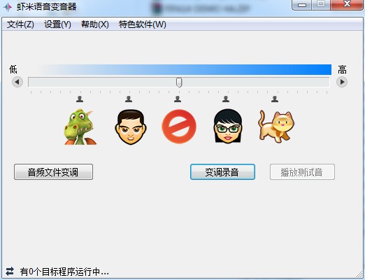 虾米语音变音器是一款语音聊天变声工具,能实时的对QQ,YY,以及Skype的通话进行变音,模拟男女声音,QQ,YY,Skype整蛊利器!还可以在本地变音录音,录制搞怪的声音分享给好友!