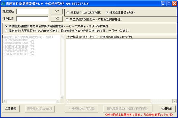 文件批量搜索器是一款绿色的文件搜索软件,这款软件具有十分强大的搜索功能,用户可以通过它快速搜索电脑系统中的文件,帮助你找到需要的文件,非常的实用。