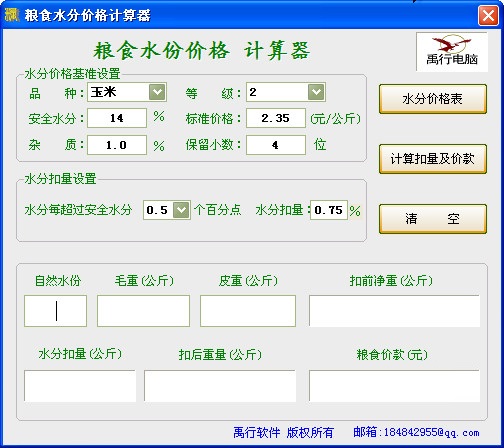 粮食水份价格计算器是一款绿色的粮食水分和价格的计算软件,软件界面简洁,操作方便。