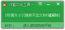 由欢乐软件制作的cf窗口化工具最新版发布了,本程序主打无毒、无害、纯绿色、无需安装、直接使用的特点,支持可调大小、鼠标不出和ESC键解除功能,是一款可以上游戏自动开启窗口化的游戏工具。