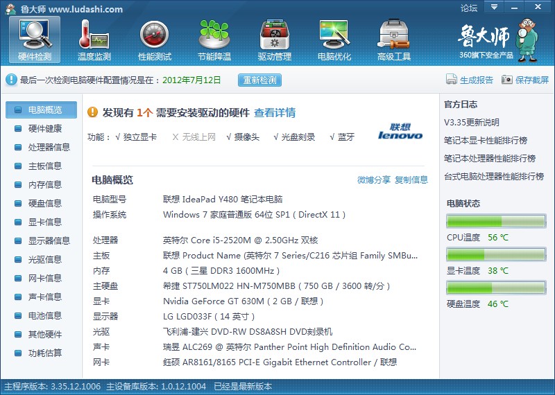 鲁大师最新版本v3.56测试版发布了!鲁大师是国内知名的免费系统工具软件,早期以能够免费鉴别硬件真伪信息为众多电脑用户所熟知;现今鲁大师已加盟360旗下,还具备了电脑稳定保障、系统性能优化提升等功能。