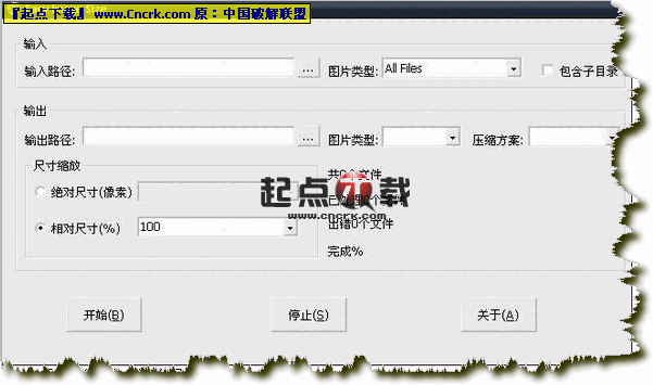b. 绝对尺寸(宽、高像素值):将源图片按指定的的宽、高像素值缩放,用户可以只指定宽、高中任意一项,程序将根据指定的项和原图片尺寸计算出对应的缩放比例,对图象完成缩放;这项功能对大量图片的尺寸规格统一化很有用。