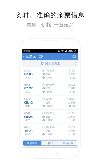 火车票余票、车次、列车时刻表显示等一目了然;