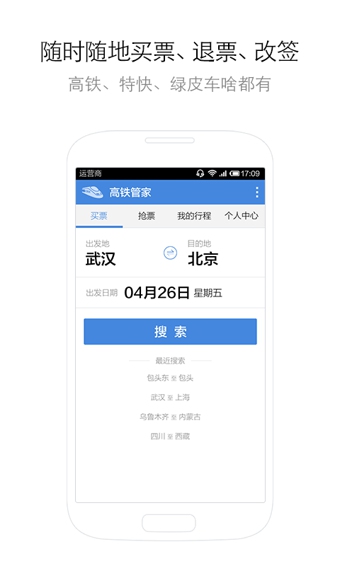 1、快速查询购买国内高铁票及火车票,无论身处何处,随时查询高铁及列车信息。2、行程变更后,车票可快速退票、改签,无需再到车站,方便快捷。