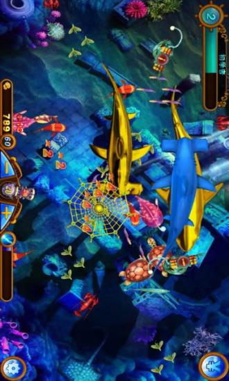 3.比较大型的鱼类比如乌龟用渔网需要多捕几次才能捕获,每一次被捕获的时候都会向前快速游动,当然,抓到他们你可以获得更多的金币。