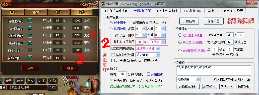 7.全自动挖矿功能,低血飞随机,死亡自动去,再不担心被人暗杀!