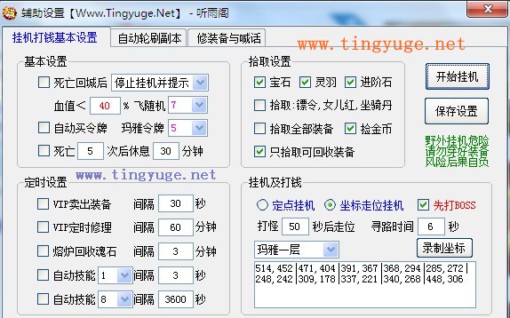 听雨阁武尊辅助功能1.不绑定机器和游戏角色,方便在多个地点使用。(注,不能同时多台登录,A地点下了,B地点可以登录。)