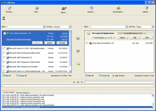 运行后,在左右是所有已经安装的软件,就像是windows的“添加和删除程序”一样,你只需要勾选需要备份的软件,然后点击“capture”。在beta阶段,好像还不能够批量备份软件,不过相信这个功能之后一定会有的。