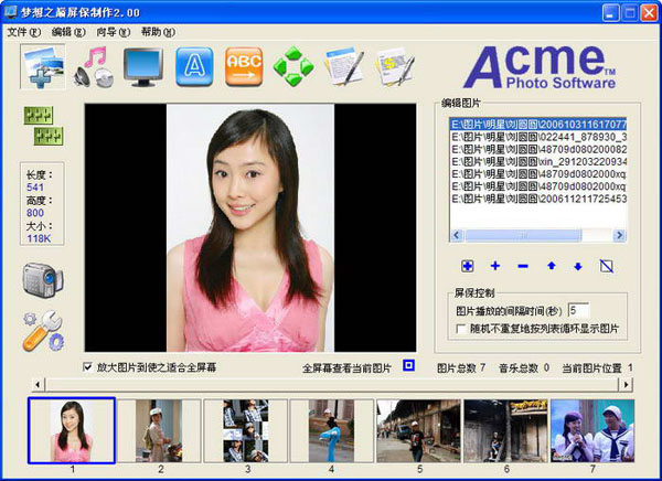 梦想之巅屏保制作是一个具有专业效果的图片屏幕保护工具。使用梦想之巅屏保制作可以让你用图片和音乐文件简易快速地制作完全可以定制的屏幕保护。无论你是屏幕保护的初学者还是专业制作人士,选择这个屏保制作工具都将使你制作属于自己的屏幕保护文件时得心应手。