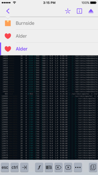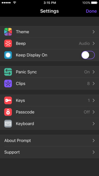 Prompt是一个轻量级SSH客户端,支持收藏、自定义快捷键、自动填写、密钥文件、蓝牙键盘、密码锁、Bonjour服务器探测等。Prompt提供了黑底白字和白底黑字两种界面风格,可以设置大字体,自动完成功能可以记住你最常用的命令,为了安全起见,你可以设置密码保护,甚至通过iTunes文件共享来导入SSHKeyPairs.