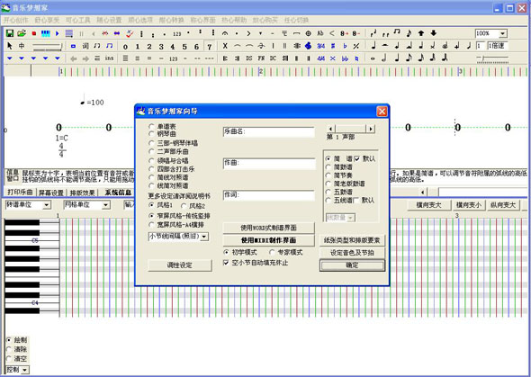 音乐梦想家全能作曲软件是支持纵向多页和横向多页排版,支持钢琴卷帘MIDI制作和事件处理等的作曲工具。