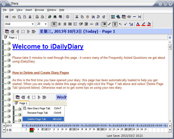 iDailyDiary 是一款日志型的软体,他有点像 office 的 onenote,只是这个有点比较类似日记形式的,就是以每天作为为单位可以纪录一些事情,免费版的可以随意写些文字在上面,更可以贴些图片。