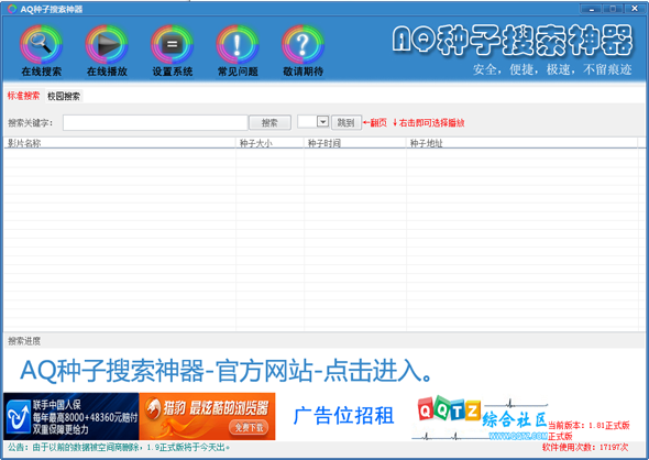 AQ种子搜索神器是一个免费,安全,双搜索引擎,带播放器的神器,可以满足你看片的需求。