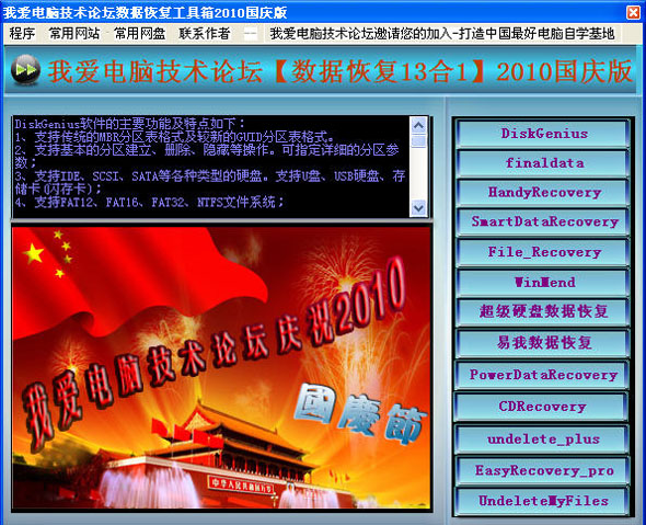 电脑数据恢复工具箱集成常用的数据恢复工具,以及硬盘健康检测工具等,绿色集成不需要安装。