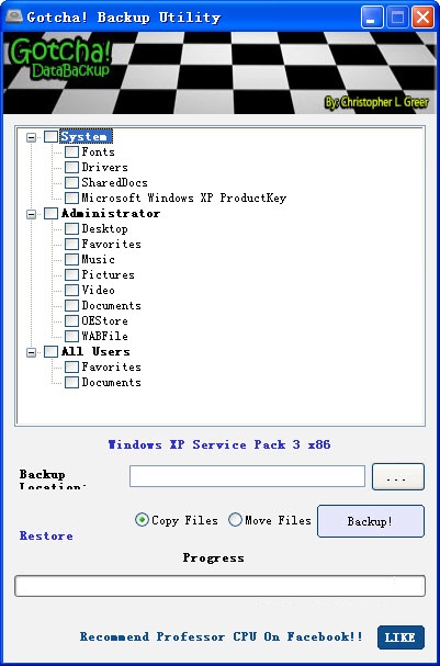 Gotcha! Backup Utility一款能够让你简单备份和还原自己的重要文件夹以及硬件驱动的工具