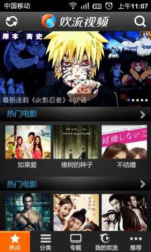 欢流视频 for Android是集电影、电视剧、比赛直播、达人秀、channelV等聚合互联网优质视频内容,同时提供个性化的内容订阅、推送与分享的手机视频门户。