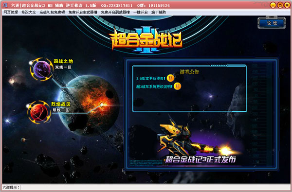 六道超合金战记3辅助是专用于超合金战记3游戏的修改器工具,超合金战记3辅助器具备超多逆天修改功能,同时还有充值礼包免费领、免费开启主武器槽、免费开启副武器槽、一键开启晶体槽等特色功能,欢迎下载体验。