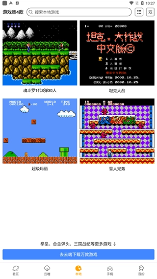 2、菜单栏中心是“本地”。软件默认向用户提供了实况本地街机游戏,实际上这里大部分游戏无需下载,能在线即玩。不过下载下来后,再次游玩会更便捷,并且也不太占用内存。