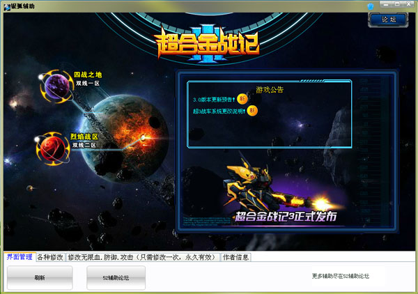 银狐超合金战记3辅助发布了,超合金战记3辅助器是一款超合金战记3游戏的修改器工具,提供丰富的修改功能,让你在游戏中体验不一样的乐趣,欢迎下载体验。