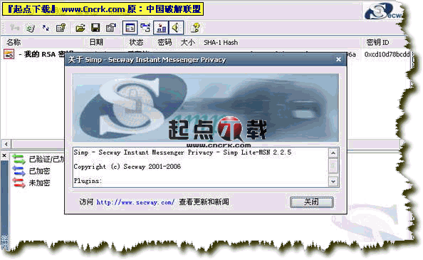 SimpLite-MSN(msn会话加密) V2.2.5 绿色汉化版 MSN Messenger 会话加密软件,SimpLite-MSN 提供了 2048 bit 字符串长度加密功能,能为 MSN 的交谈内容提供良好的隐蔽效果,操作简便,远离“有心人士”在局域网络中使用监听工具偷窥 MSN 交谈内容的可能性。