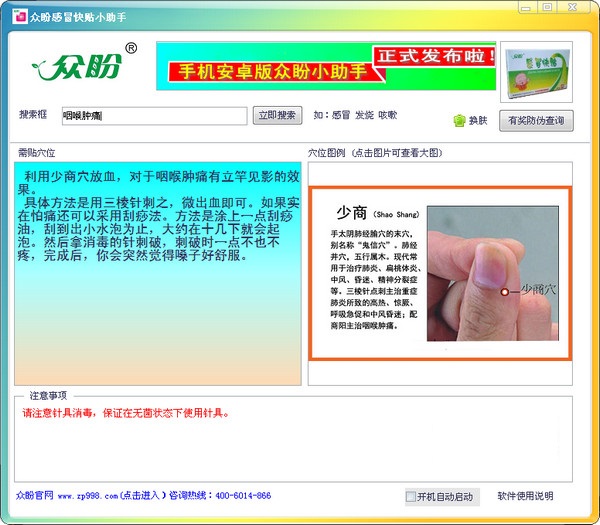 众盼感冒快贴小助手能帮顾客很好地使用感冒贴将是对顾客服务的一种贴心体现。所以众盼小助手就是把感冒贴常用的一些穴位集合在一起供顾客查询使用,让复杂穴位简单化查询,并集合了中医里面常见病所使用到的穴位。